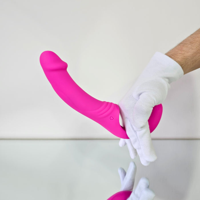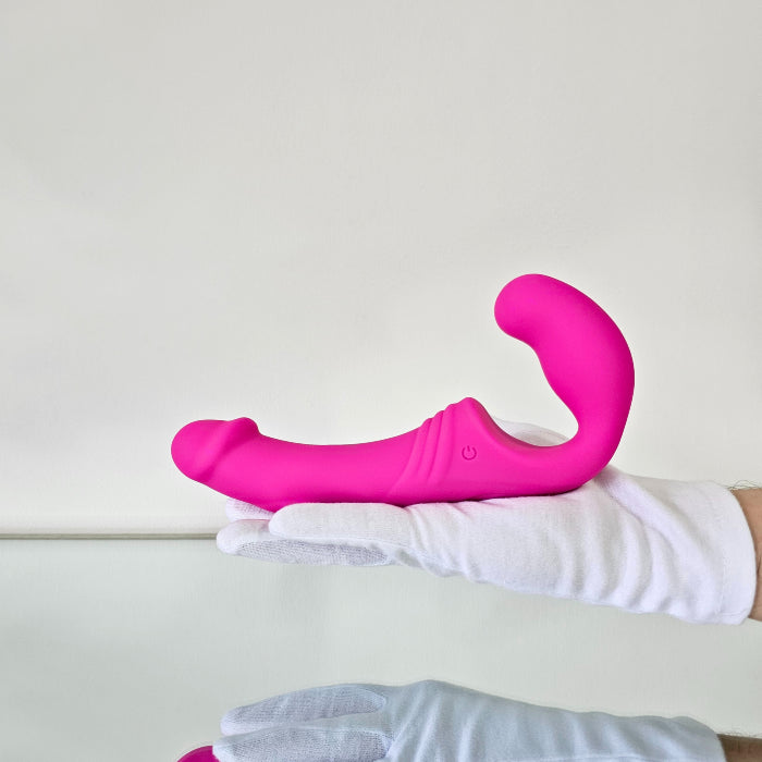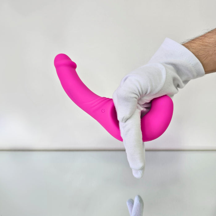 Hecho en silicona medicada, el cual es el material más suave y amigable con el cuerpo, este juguete tiene un diseño en el que su lado más corto cuenta con una curvatura y espacio que permite que, al ser penetrado en el canal vaginal, este se "abrace" y sostenga de la misma zona íntima femenina, haciendo la función de un strap-on sin correa o tirantes, por lo que quien lo lleva puesto sentirá todo el tiempo una intensa estimulación en punto G mientras penetra a su pareja, logrando una experiencia mucho más que satisfactoria.